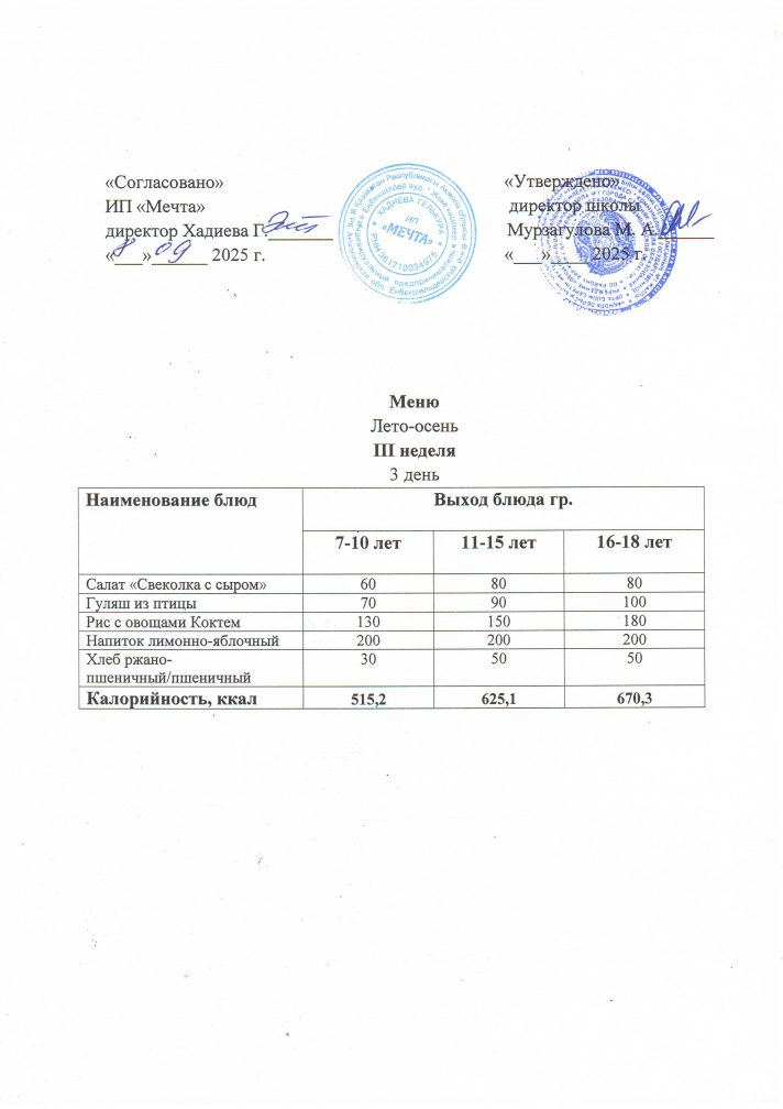 19 қараша күнгі ас мәзірі