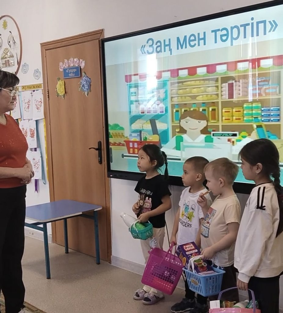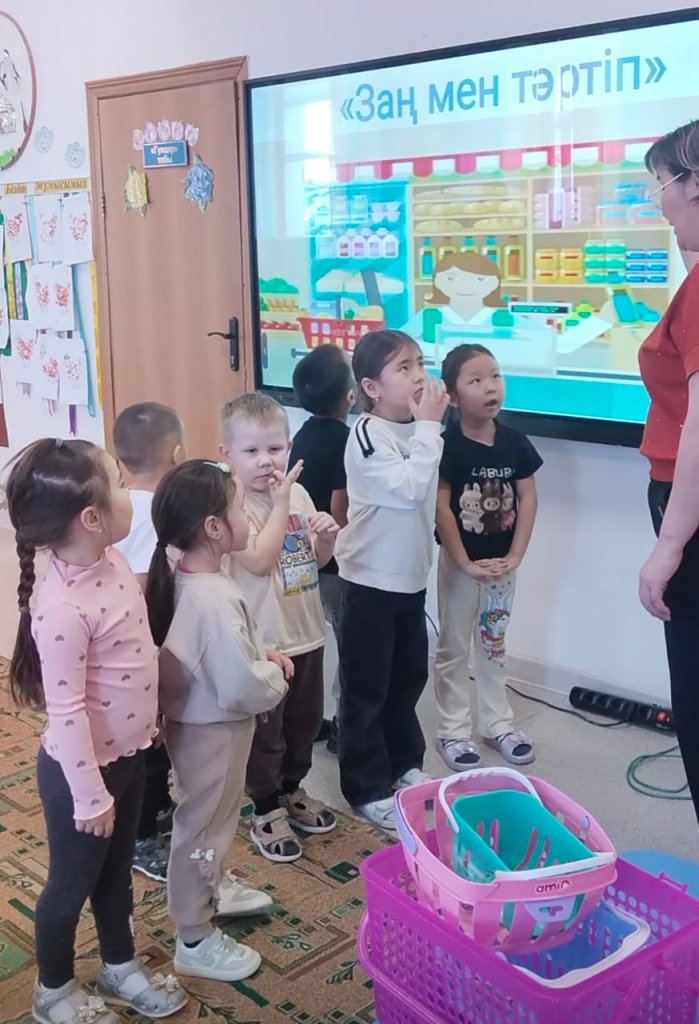 Балаларға әділдік пен адалдық ұғымдарын түсіндіру барысында жетондар мен банк карточкасы арқылы есептесу жүргізіліп, балаларды адал әрекет етуге үйрету көзделді. Әр бала алған затына сәйкес жетондарды арнайы қорапқа салып, әділ болудың маңызын тәжірибе жүзінде ұғынды.