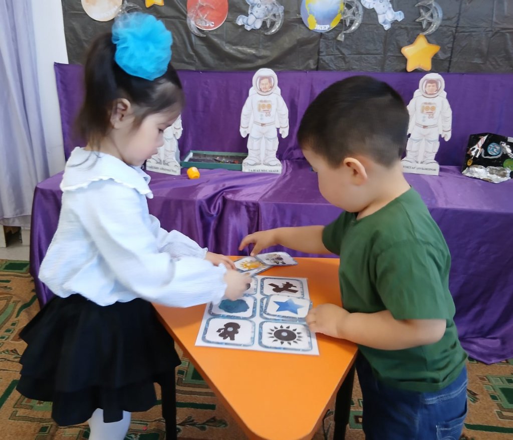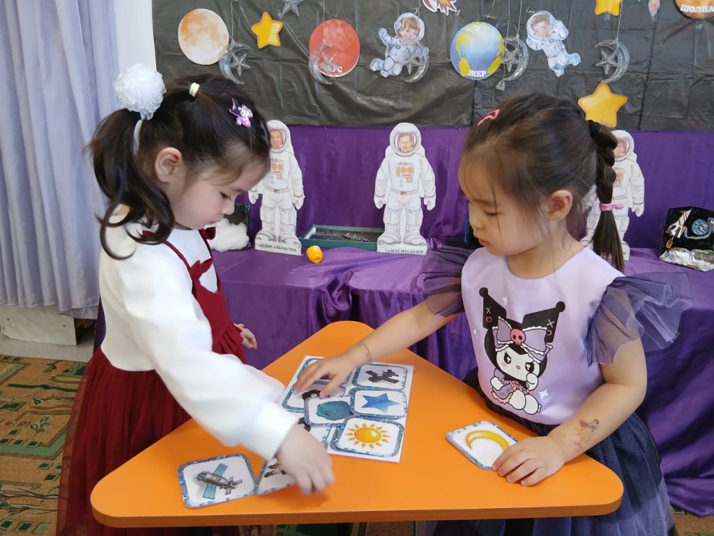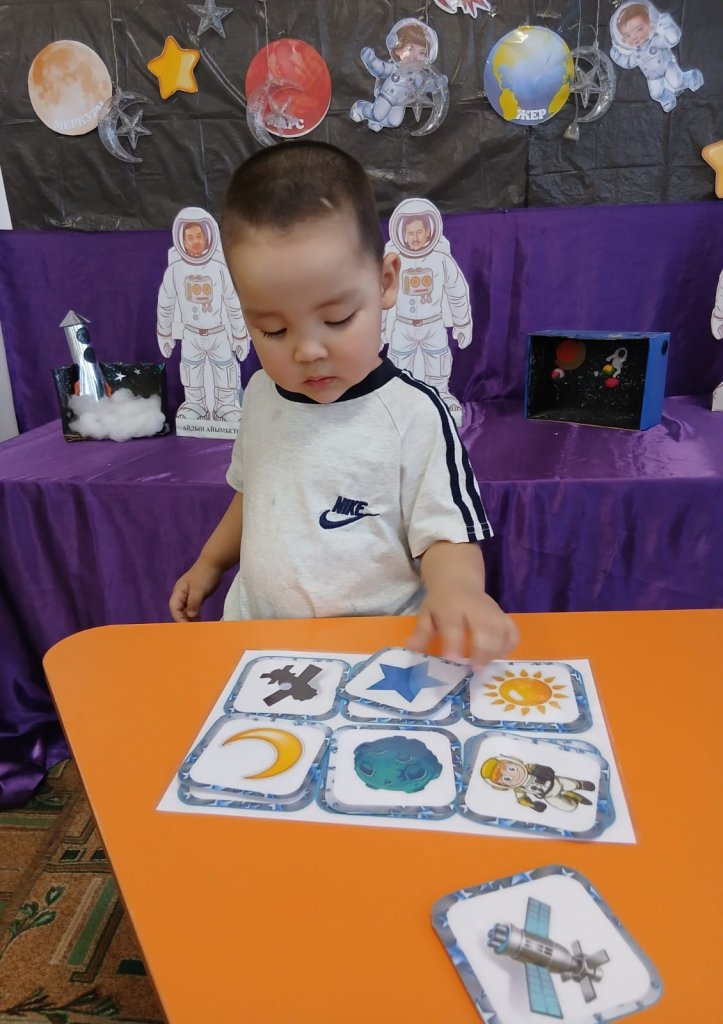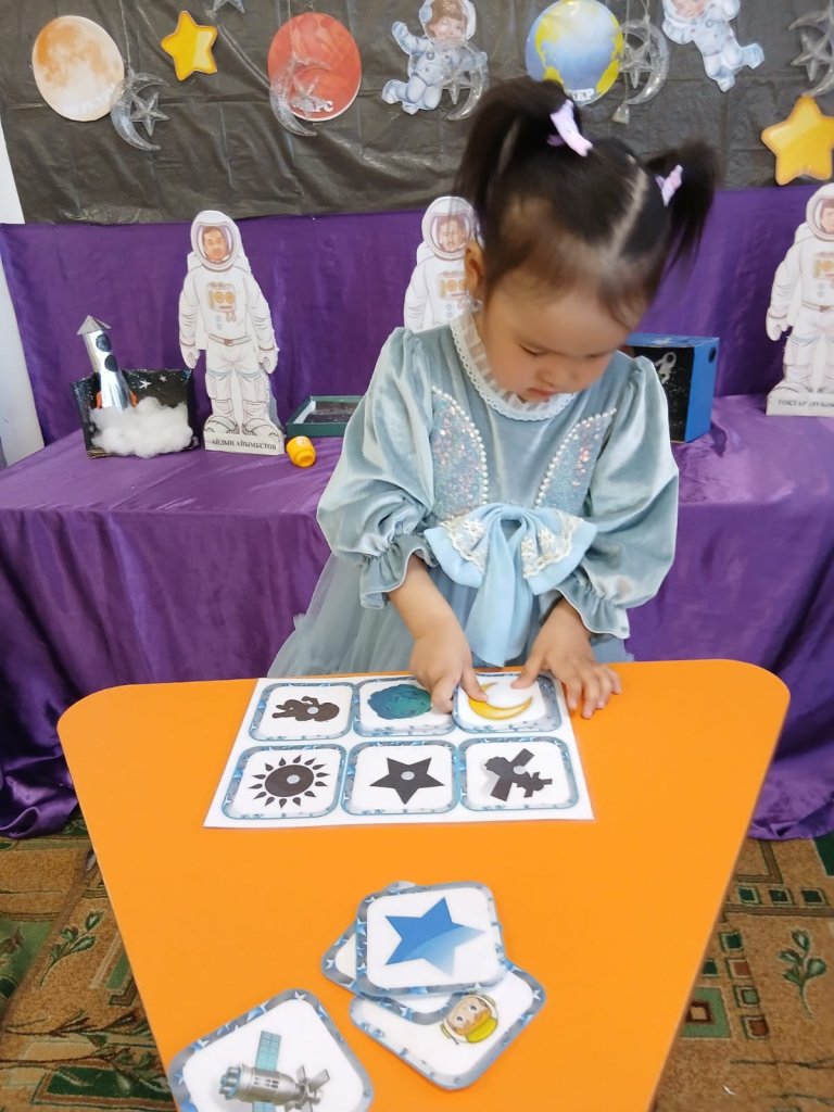 Балаларға ғарыш әлемі туралы қарапайым түсінік беру, ғарышкерлердің еңбегімен таныстыру. Балалардың танымдық қызығушылығын арттыру, қиялын дамыту. Отанын сүйетін, батыл да білімді болуға тәрбиелеу.