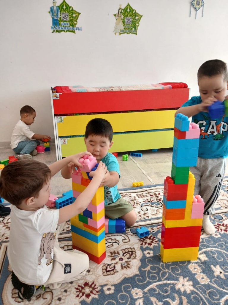 Тақырыбы: «Бірге ойнаймыз» Бағыты: Сыпайы қарым-қатынас Идеологиясы: «Заң мен тәртіп» Тобы: «Гүлдер» (4–5 жас) Тобы: «Балапан» (3–4 жас) Тәрбиешілер: Тургужинова М.М. Калиаскарова Б.С. Мақсаты: Балаларды бір-бірімен достық қарым-қатынас жасауға, тәртіп сақтауға, ойын барысында ережелерді дұрыс орындауға үйрету. Бірлесіп ойнау арқылы ұйымшылдыққа, жауапкершілікке тәрбиелеу.